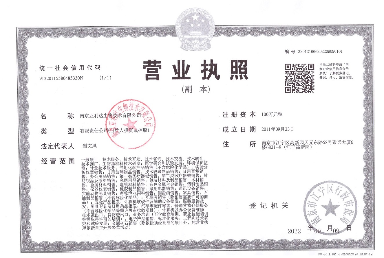 南京亞利達(dá)生物技術(shù)有限公司 版權(quán)所有 蘇ICP備15038287號(hào)-1